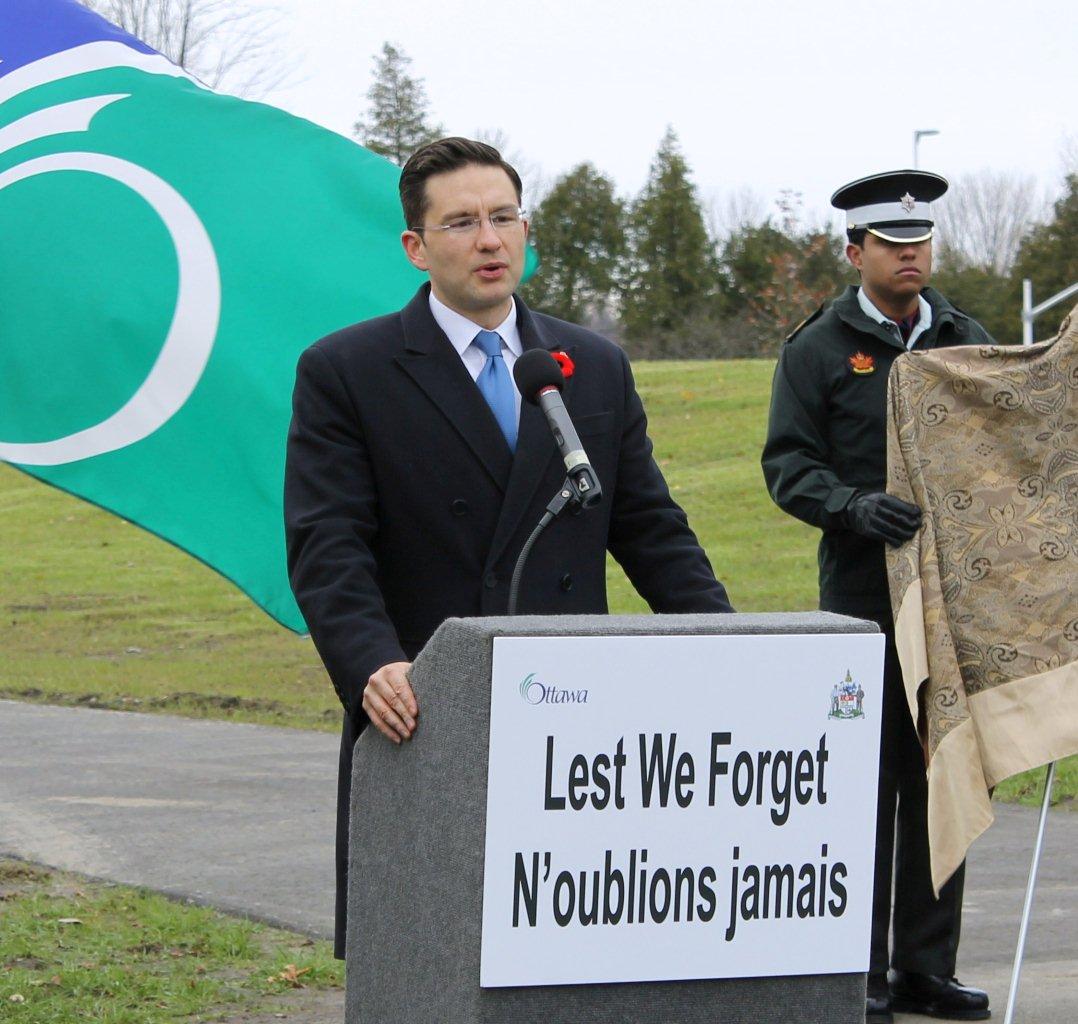2) Democratic Reform Minister Pierre Poilievre, MP for Nepean-Carleton, speaks at the Vimy Memorial Bridge renaming ceremony.